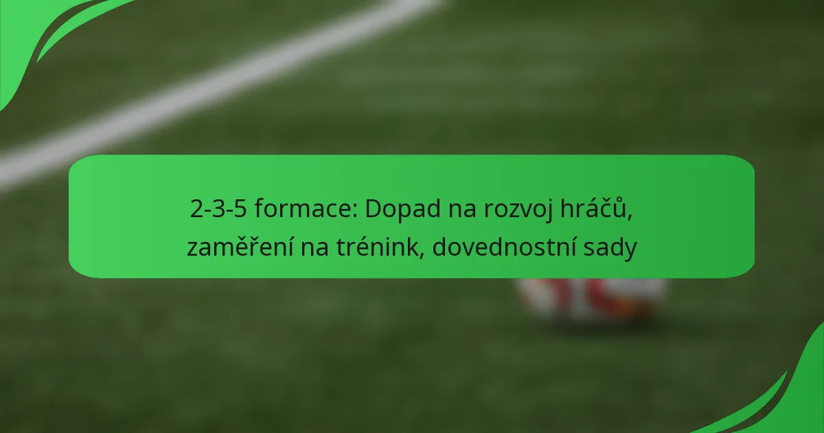 Formace 2-3-5 je tradiční fotbalové uspořádání, které zahrnuje dva obránce, tři záložníky a pět útočníků, přičemž klade důraz na ofenzivní hru a vytváření příležitostí ke skórování. Tato formace nejenže formuje rozvoj hráčů tím, že zlepšuje individuální dovednosti a týmovou spolupráci, ale také podporuje taktickou uvědomělost, což hráče povzbuzuje k přijetí všestranných rolí na hřišti. Trénink v tomto systému by se měl zaměřit na zdokonalování specifických dovedností pro každou pozici, zatímco podporuje soudržné strategie a efektivní spolupráci mezi hráči.