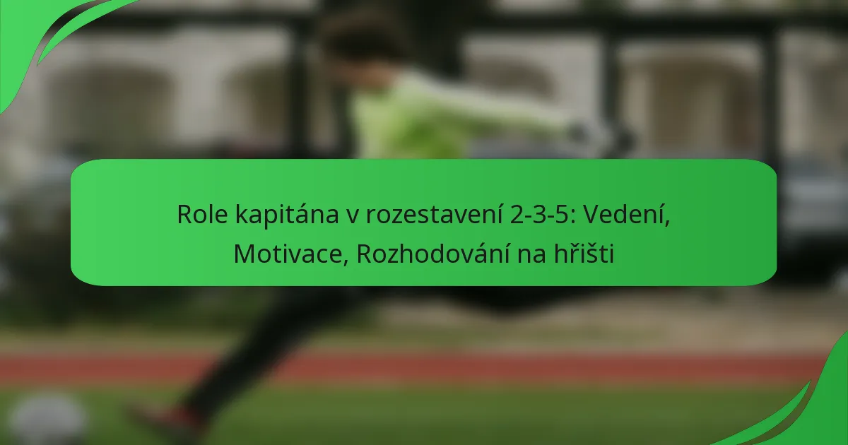 Kapitán v systému 2-3-5 hraje zásadní roli při vedení týmu během hry, podporování motivace a strategickém rozhodování. Jeho povinnosti zahrnují vedení, komunikaci a řešení konfliktů, což je vše zásadní pro udržení týmové soudržnosti a efektivity na hřišti.
